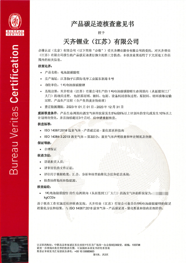 3) 伟德国际victor1946每年根据环境管理生命周期评价原则及产品碳足迹量化指南,定期开展公司各基地三款主要产品(电池级碳酸锂、电池级氢氧化锂和金属锂)的环境足迹评价工作,并引入第三方鉴证机构对产品碳足迹的核算方法及原始数据进行鉴定,以回应各利益相关方。