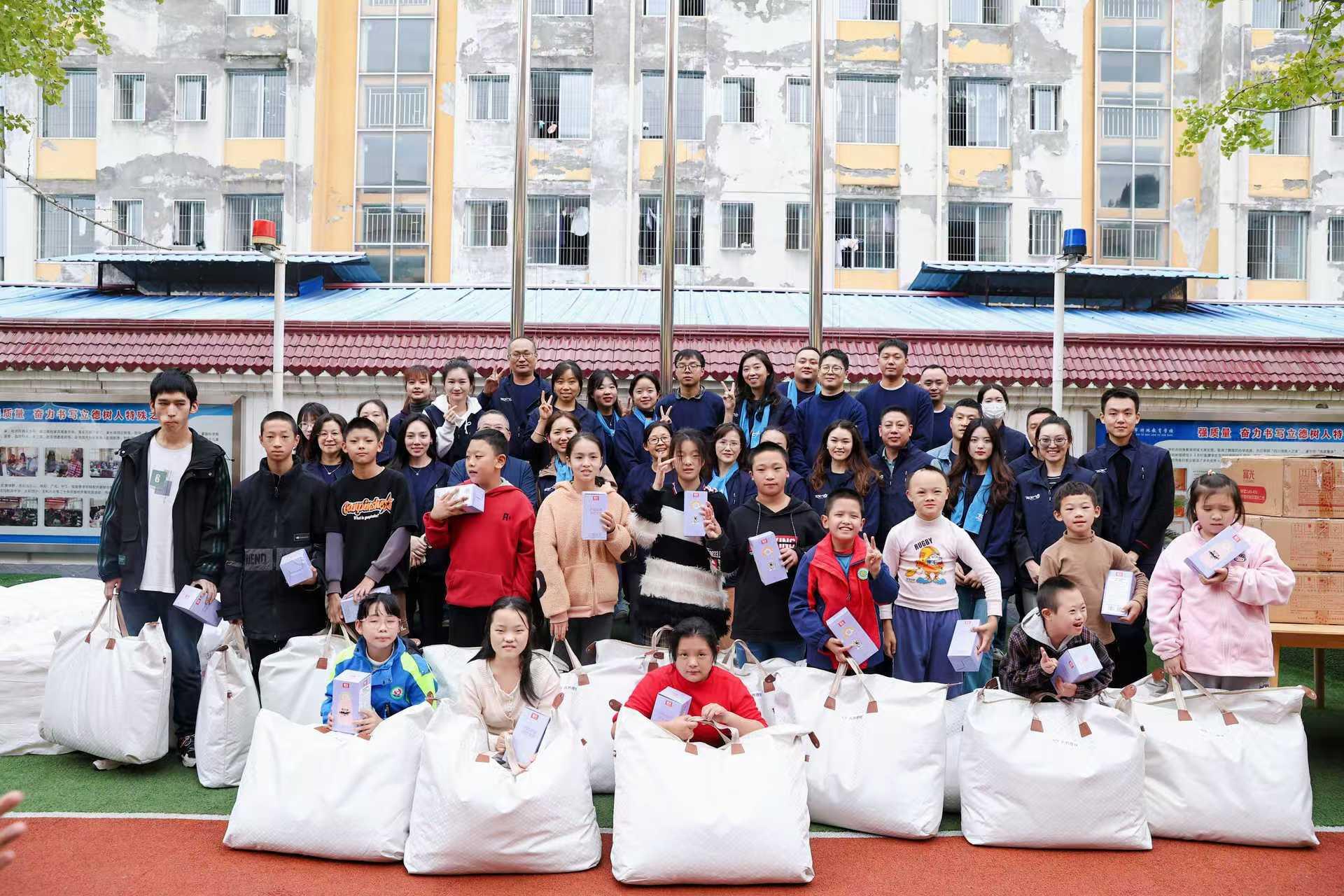 2024年11月,志愿者们带着浓浓的爱意和满满的物资,走进射洪市特殊教育学校,开展 “最亮的星”主题志愿服务。志愿者代表在活动致辞中表达了对学校老师的敬意,并鼓励同学们要用坚韧不拔的意志和积极向上的态度,努力书写属于自己的人生,成为 “最亮的星”。同时,志愿者代表还分享了天齐十多年来对特殊教育志愿服务的专注与坚持。