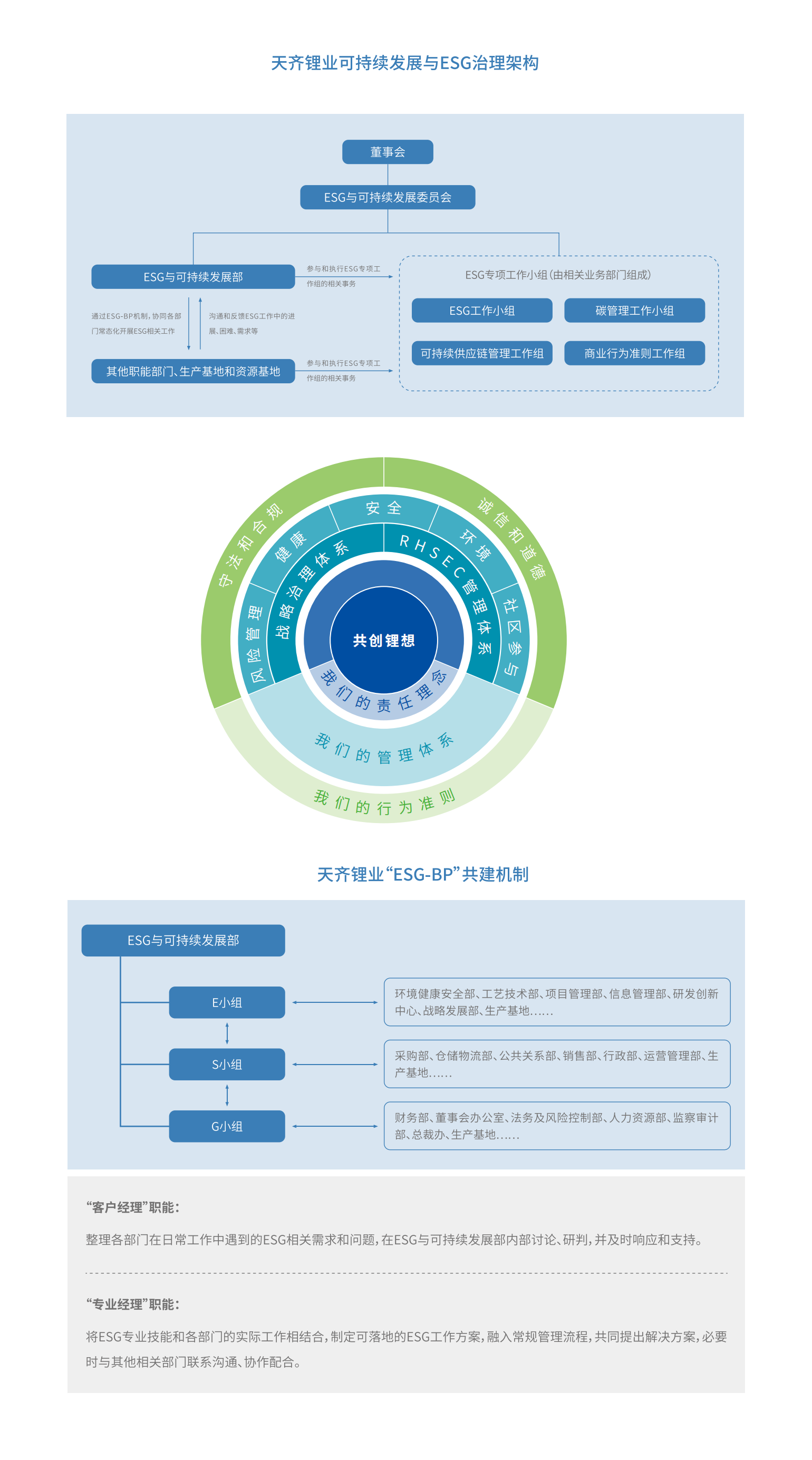 伟德国际victor1946将“共创锂想”的可持续发展责任理念深度融入公司发展,构建统一的ESG治理架构,配以从治理到指标的完善系统,强化ESG行动落地落实,在服务公司战略的同时,实现与利益相关方的良性互动。